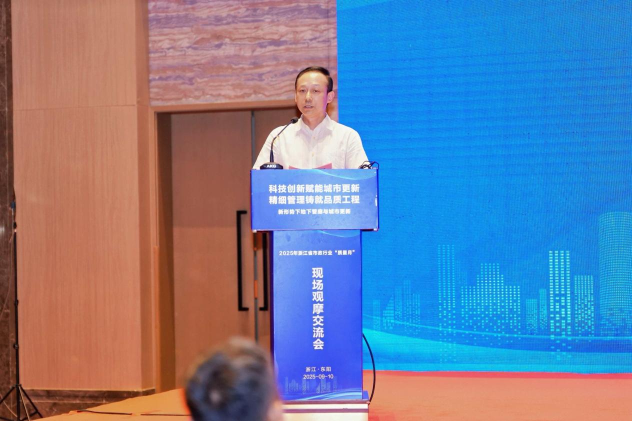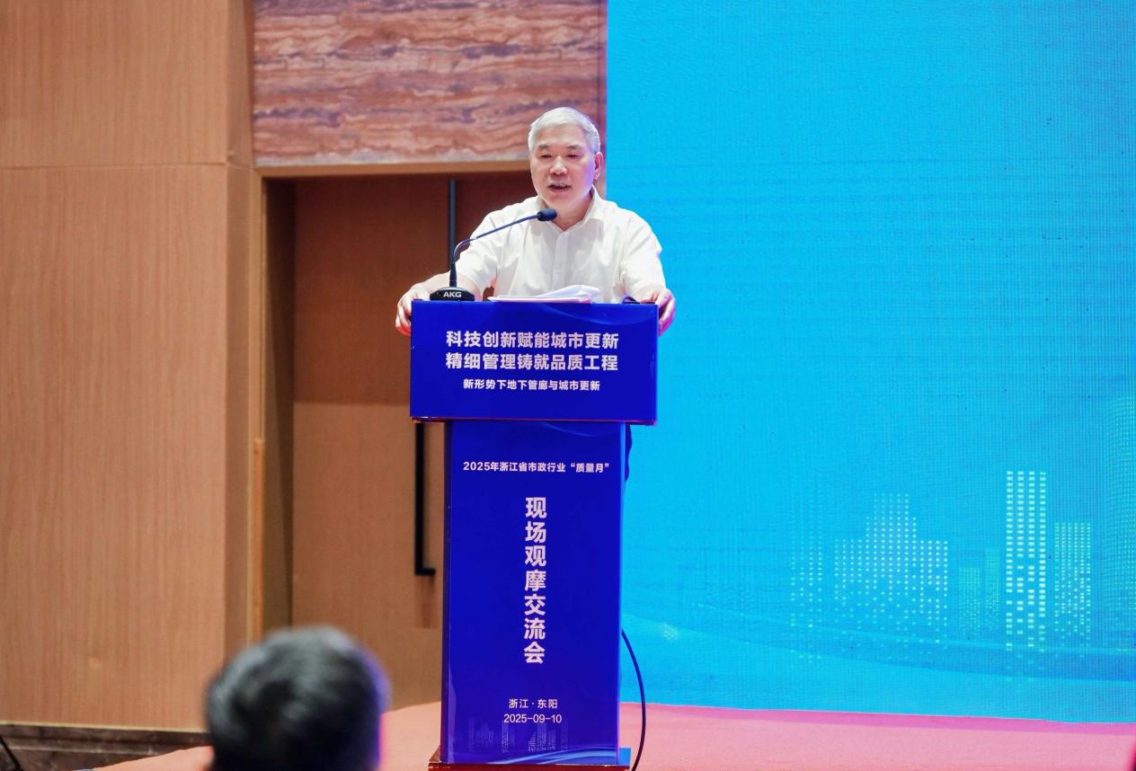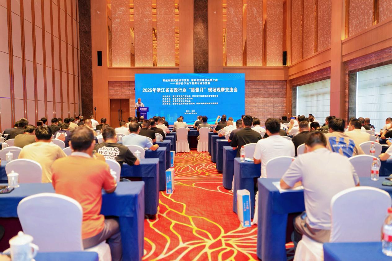 发表时间:2025-09-17 09:46 2025年9月10日,由浙江省市政行业协会、浙江省工程建设质量管理协会联合主办的2025年浙江省市政行业“质量月”现场观摩交流会在东阳市成功举办。本次活动以“科技创新赋能城市更新,精细管理铸就品质工程——新形势下地下管廊与城市更新”为主题,由歌山建设集团有限公司承办,金华市市政工程协会协办,得到金华市住房和城乡建设局、东阳市住房和城乡建设局的大力支持。浙江省工程建设质量管理协会会长朱永斌,浙江省市政行业协会会长郑旭晨,金华市住房和城乡建设局副局长贲鸿程、舒慧斌,东阳市住房和城乡建设局局长郭旭军,浙江省工程建设质量管理协会副会长常德强,浙江省工程建设质量管理协会副会长兼秘书长胡庆红,歌山建设集团董事长何向全等领导出席,来自全省各地行业主管部门、协会、企业代表共170余人参会。会议由浙江省市政行业协会秘书长唐小军主持。 |